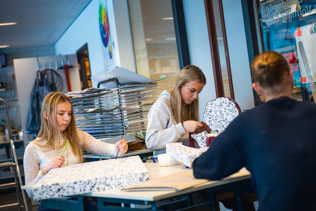 Verder maakten leerlingen een speels zit‑ en speelobject met een dahlia van gerecycled glas‑in‑lood en een glijbaan erdoorheen. Daarnaast ontwierp een groep een groot object waarin steen, natuur, felle kleuren en veel planten samenkomen om ontmoeting tussen mensen te stimuleren. Dit is slechts een greep uit de ideeën: in totaal zijn er 10 ontwerpen gemaakt, die samen laten zien hoe breed en verrassend de creativiteit van de leerlingen is.